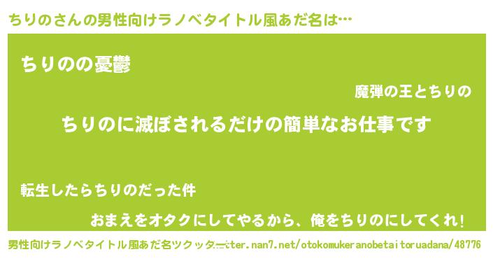 | ヒーロー風カッコイイあだ名 | 『スーパーチリノ』『正義の使者ちりの』 |