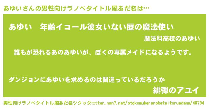 | ヒーロー風カッコイイあだ名 | 『ネオアユイ』『究極戦士アユイ』 |