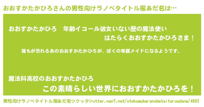 | 意味不明あだ名 | 『永久保存おおすかたかひろ』 |