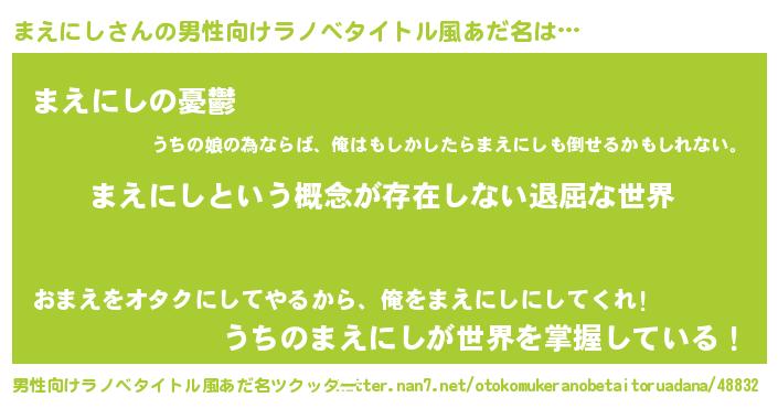 | ヘコむあだ名 | 『まえにし(笑)』『まえもー』 |