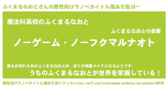 | 女子向けラノベタイトル風あだ名 | 『ふくまるなおと恋絵巻』 |