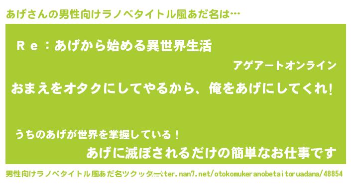 | ヒーロー風カッコイイあだ名 | 『友情の使者あげ』『サイバー戦士アゲ』 |