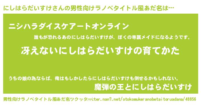| 胡散臭い通販商品みたいなあだ名 | 『モテモテ間違いなしブレスレット…その名も「にしはらだいすけ」』 |