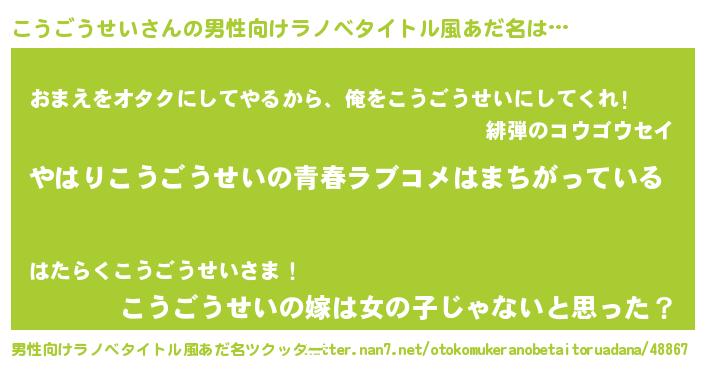 | ポケモン風あだ名 | 『コウゴダネ』『コックウザ』 |
