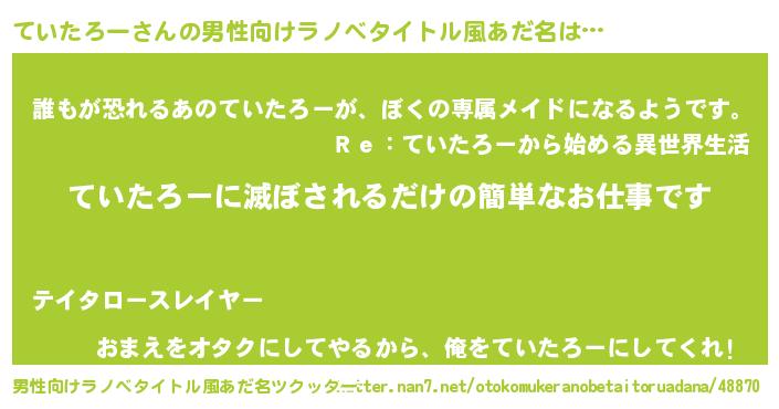 | 意味不明あだ名 | 『永久保存ていたろー』『自称ていたろー』 |