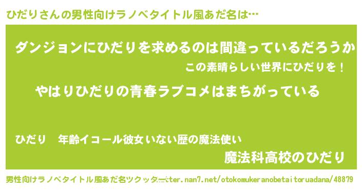 | 女子向けラノベタイトル風あだ名 | 『ひだりの雑貨屋さん』 |