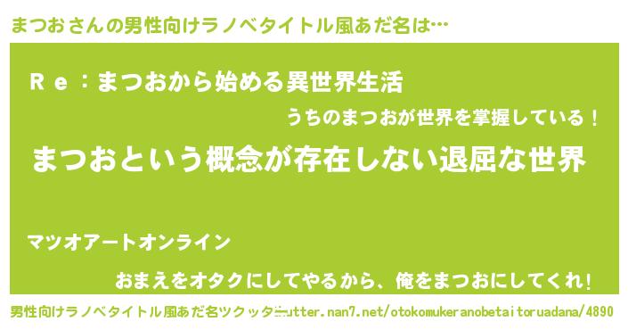 | 女子向けラノベタイトル風あだ名 | 『まつおの契約王妃』『闇のまつお』 |