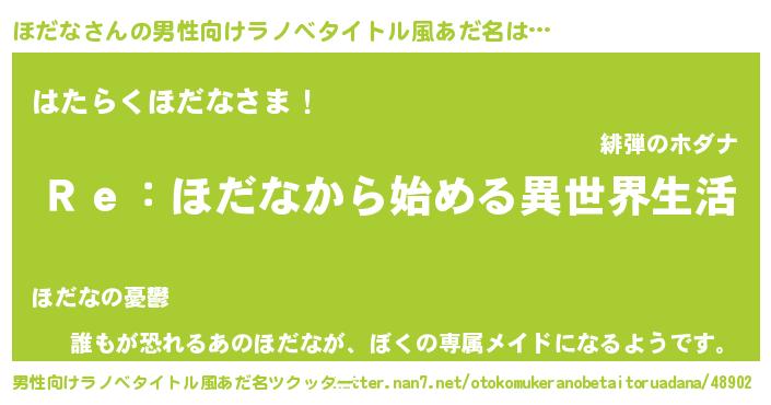 | 女子向けラノベタイトル風あだ名 | 『ほだなストレイドッグス』 |