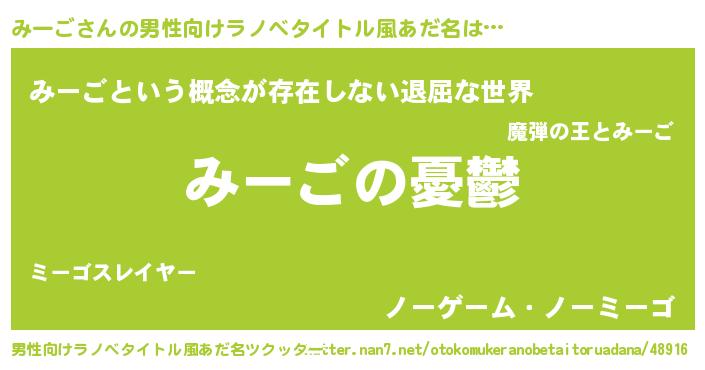 | 女子向けラノベタイトル風あだ名 | 『みーご姫と円卓の騎士』 |