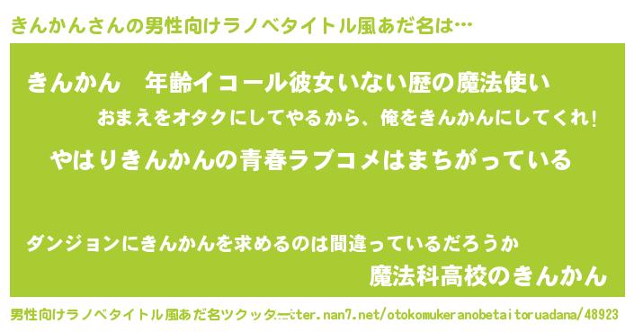 | ヒーロー風カッコイイあだ名 | 『ウルトラきんかんマン』『炎刃騎士キン』 |