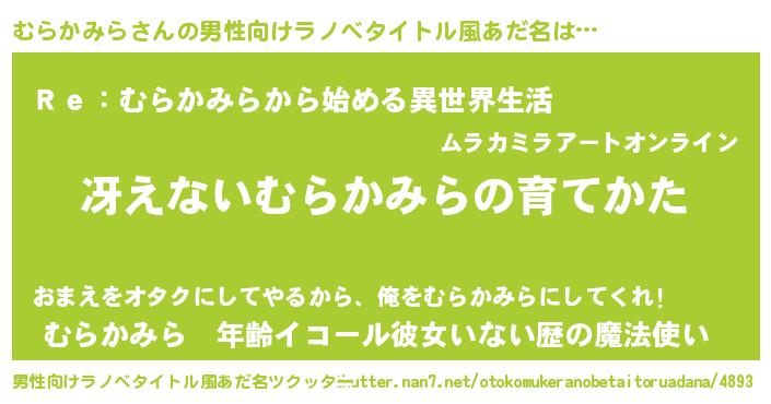 | ヒーロー風カッコイイあだ名 | 『サイバー戦士ムラカミラ』 |