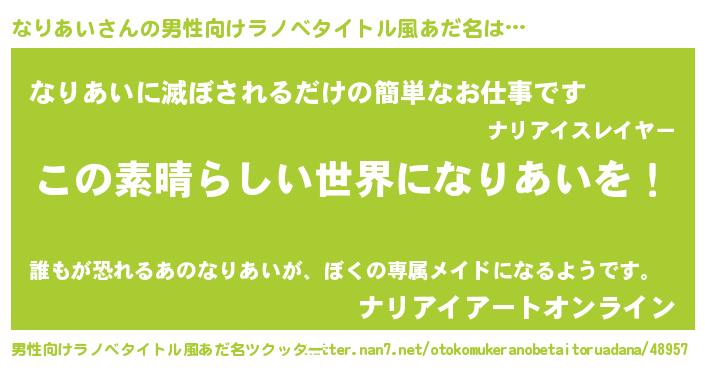 | ヒーロー風カッコイイあだ名 | 『仮面ナリダー』『スーパーナリアイ』 |