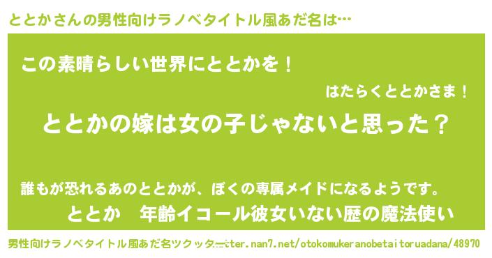 | 胡散臭い通販商品みたいなあだ名 | 『全米が絶賛したサプリメント…その名も「ととか」』 |