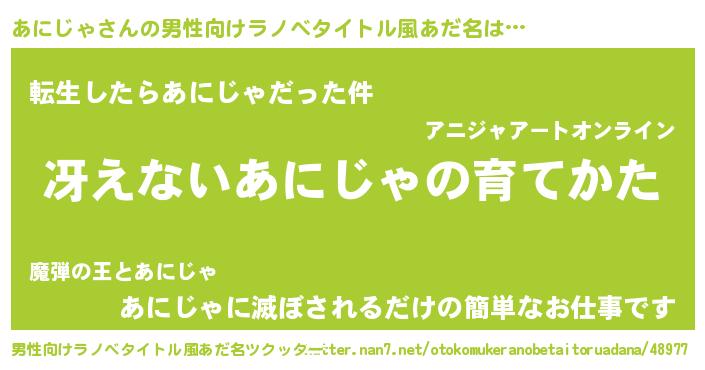| 胡散臭い通販商品みたいなあだ名 | 『モテモテ間違いなしブレスレット…その名も「あにじゃ」』 |