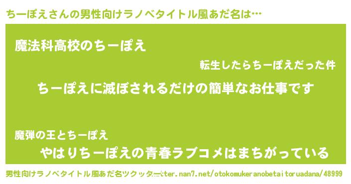 | ヒーロー風カッコイイあだ名 | 『最強戦士チーポエ』『仮面チーダー』 |