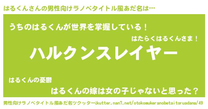| ヒーロー風カッコイイあだ名 | 『黄金騎士ハル』『スーパーハルクン』 |