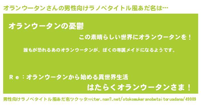 | 胡散臭い通販商品みたいなあだ名 | 『前代未聞の健康食品…その名も「オランウータン」』 |