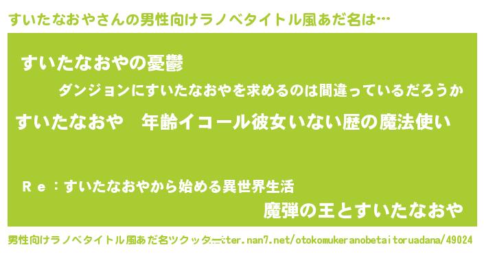 | 胡散臭い通販商品みたいなあだ名 | 『億万長者になれるブレスレット…その名も「すいたなおや」』 |