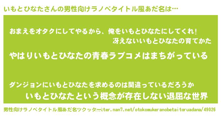 | 女子向けラノベタイトル風あだ名 | 『いもとひなた伯爵の花嫁』 |