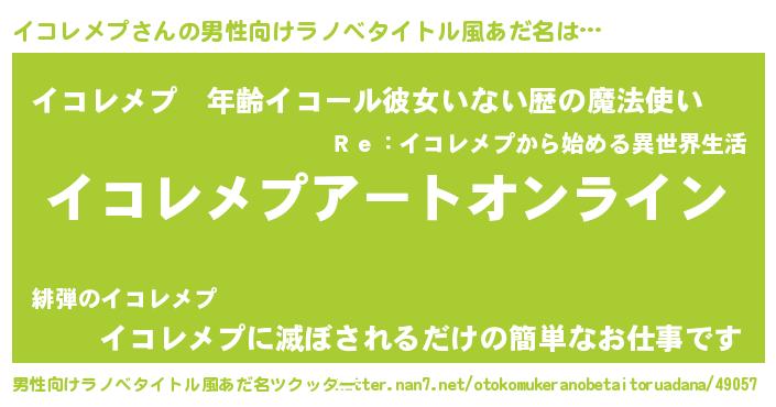 | 女子向けラノベタイトル風あだ名 | 『イコレメプ姫と円卓の騎士』 |