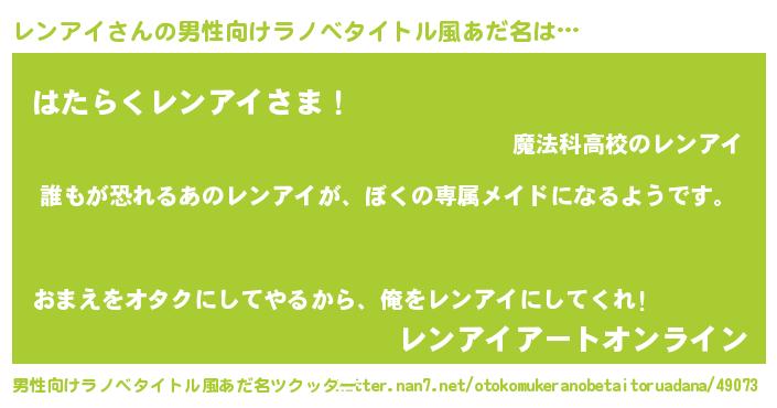 | 恥ずかしいあだ名 | 『レンちん』『プリティーレンアイ』 |