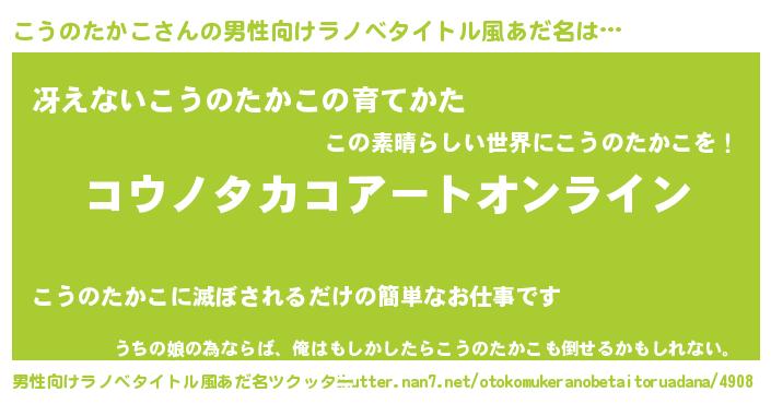 | 女子向けラノベタイトル風あだ名 | 『誰かこのこうのたかこを説明してください! ~契約から始まるウェディング~』 |