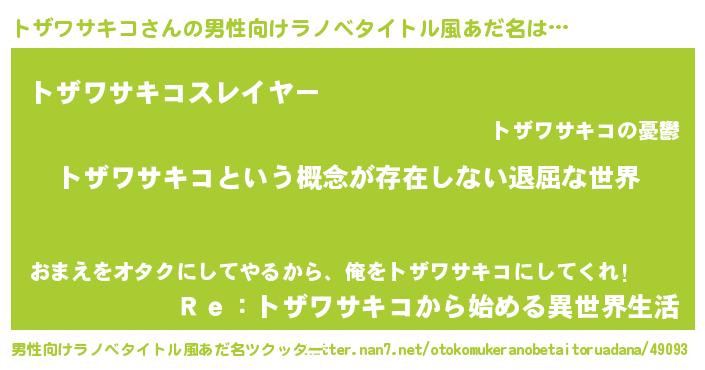 | 胡散臭い通販商品みたいなあだ名 | 『来世でも幸せになれる健康食品…その名も「トザワサキコ」』 |