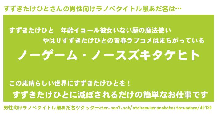 | ヒーロー風カッコイイあだ名 | 『慈愛の使者すずきたけひと』 |
