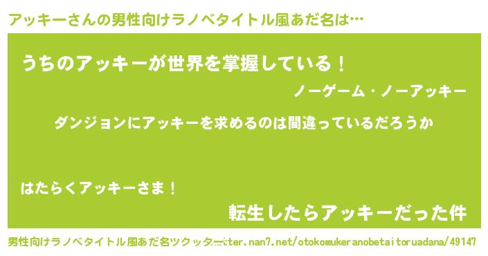 | 意味不明あだ名 | 『とにかく怪しいアッキー』 |