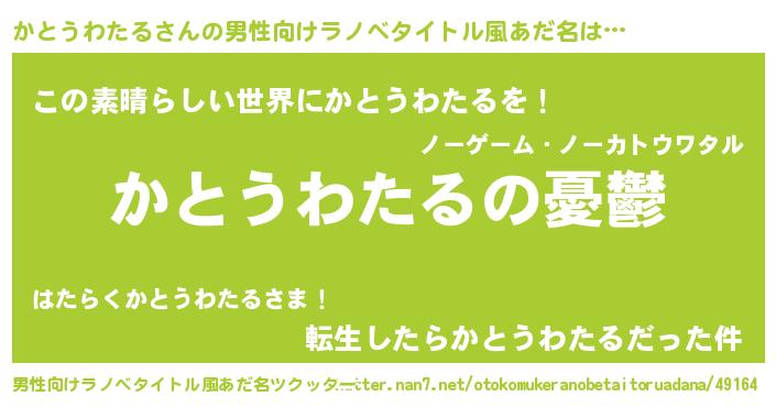 | 胡散臭い通販商品みたいなあだ名 | 『モテモテ間違いなし霊験あらたかなお札…その名も「かとうわたる」』 |