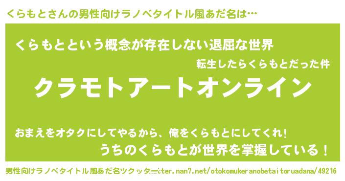 | 胡散臭い通販商品みたいなあだ名 | 『億万長者になれる霊験あらたかなお札…その名も「くらもと」』 |