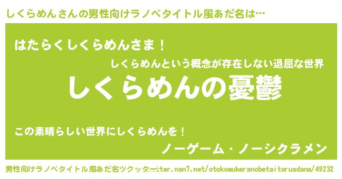 | 胡散臭い通販商品みたいなあだ名 | 『必ず成功するブレスレット…その名も「しくらめん」』 |