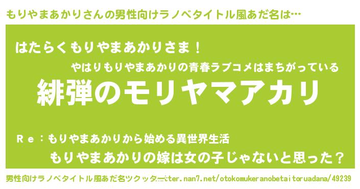 | 女子向けラノベタイトル風あだ名 | 『シンデレラもりやまあかり家の靴箱館』 |