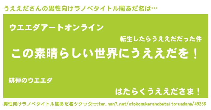 | 女子向けラノベタイトル風あだ名 | 『悪役うええだに転生したようですが、知った事ではありません』 |