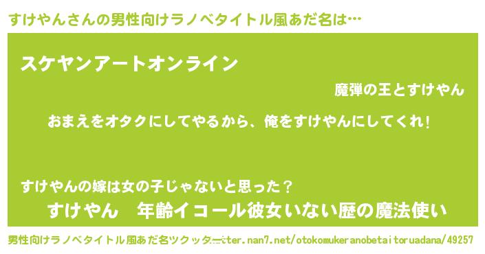 | 女子向けラノベタイトル風あだ名 | 『すけやん夫妻のなれそめ』 |