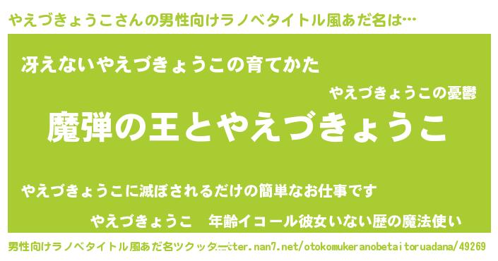 | 意味不明あだ名 | 『住所不定無職やえづきょうこ(12歳)』 |