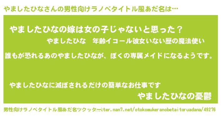| 女子向けラノベタイトル風あだ名 | 『異世界でカフェやましたひなを開店しました。』 |