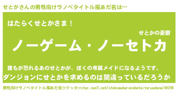 | 女子向けラノベタイトル風あだ名 | 『死神せとかの再婚』『せとかの契約王妃』 |