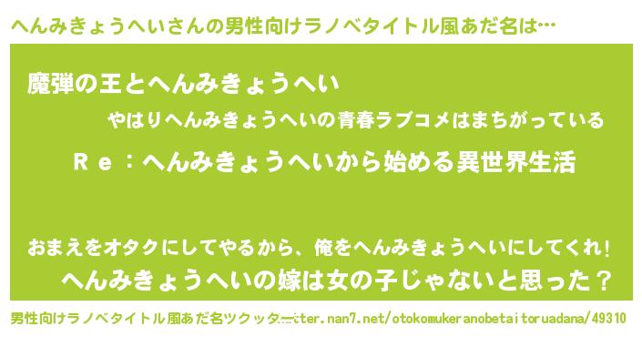 | ヒーロー風カッコイイあだ名 | 『最強戦士ヘンミキョウヘイ』 |
