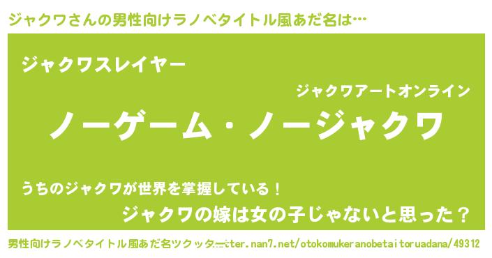 | 女子向けラノベタイトル風あだ名 | 『死神ジャクワの再婚』 |