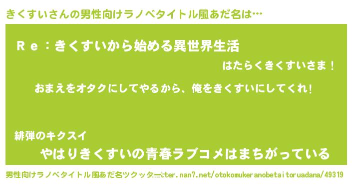 | 女子向けラノベタイトル風あだ名 | 『きくすい恋絵巻』『闇のきくすい』 |