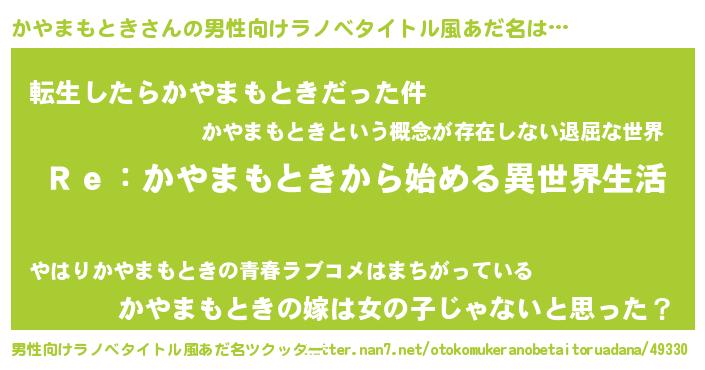 かやまもときさんの男性向けラノベタイトル風あだ名をツクッター!