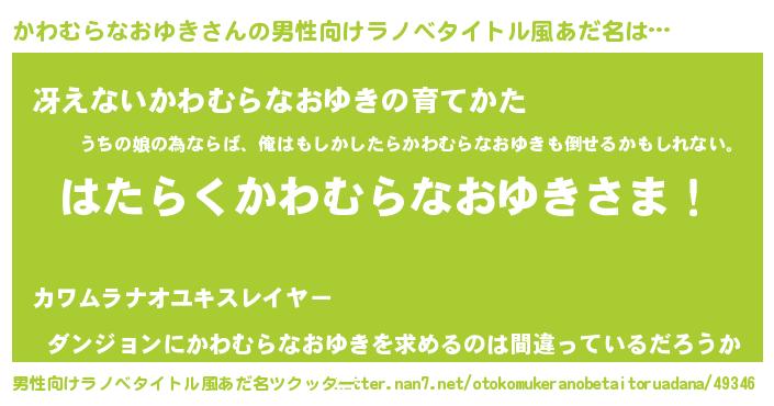 | 意味不明あだ名 | 『とにかく怪しいかわむらなおゆき』 |