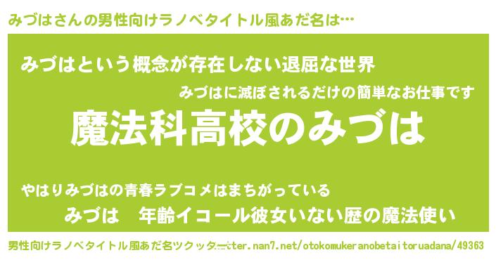 | 意味不明あだ名 | 『自称みづは』『永久保存みづは』 |