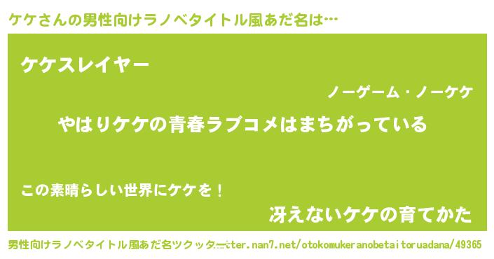 | 女子向けラノベタイトル風あだ名 | 『ケケ伯爵の花嫁』『死神ケケの再婚』 |