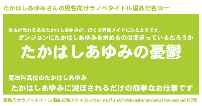 | 胡散臭い通販商品みたいなあだ名 | 『モテモテ間違いなし水晶球…その名も「たかはしあゆみ」』 |
