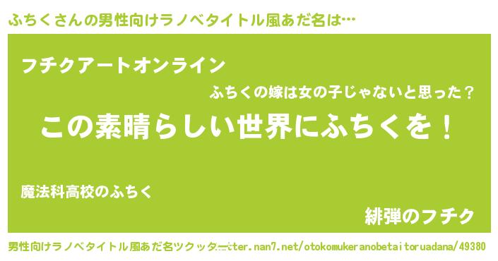 | 意味不明あだ名 | 『住所不定無職ふちく(7歳)』『自称ふちく』 |