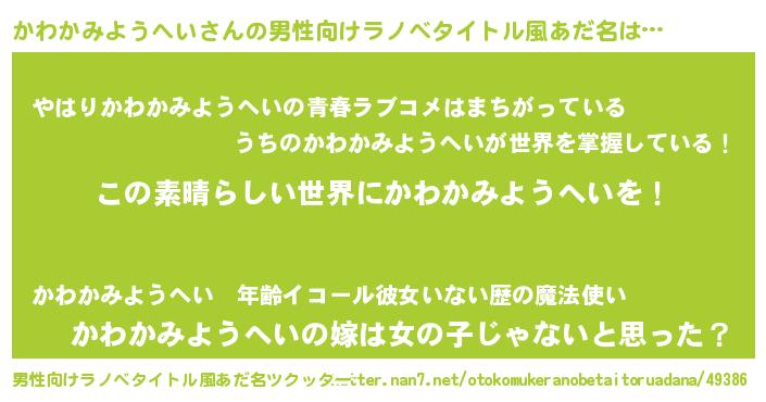 | 意味不明あだ名 | 『住所不定無職かわかみようへい(6歳)』 |