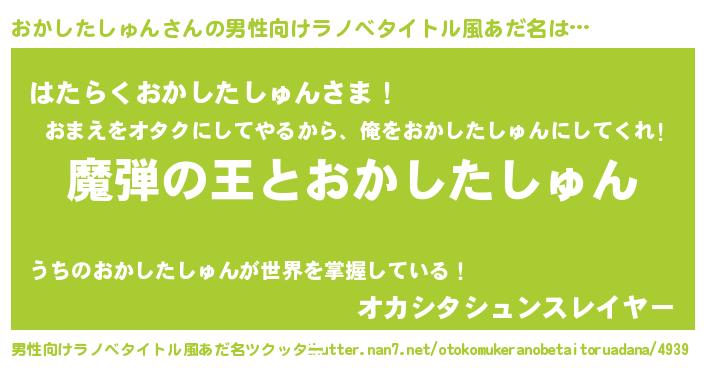 | 女子向けラノベタイトル風あだ名 | 『おかしたしゅんが死なない童話 林檎のおかしたしゅんの診療簿』 |
