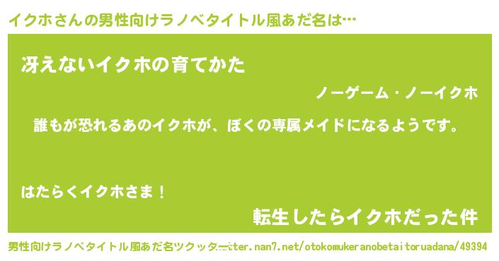| ヘコむあだ名 | 『イクホ(笑)』『豆乳』『イクを』 |